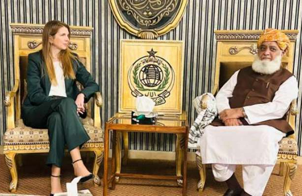 برطانوی ہائی کمشنر جین میریٹ نے مو لانا فضل الرحمن سے افغانستان میں خواتین کی تعلیم کے حوالے تعاون کی اپیل کی۔