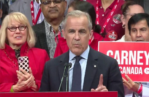 فتح کے بعد اپنی تقریر میں مارک کارنی نے حامیوں سے خطاب کرتے ہوئے کہا کہ امریکی صدر ٹرمپ ہمیں توڑ کر ہم پر قبضہ کرنا چاہتے ہیں لیکن ایسا کبھی نہیں ہوگا۔