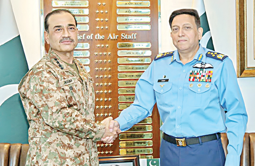 اسلام آباد۔چیف آف آرمی اسٹاف جنرل سید عاصم منیر کی ائیر ہیڈکوارٹر پہنچ گئے۔ چیف آف ائیر اسٹاف ائیر چیف مارشل ظہیر احمد بابر سدھو نے آرمی چیف کا گرم جوشی سے استقبال کیا