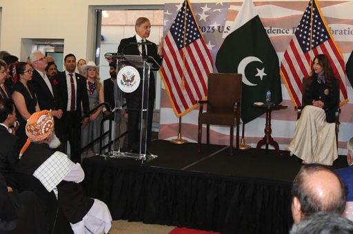 اسلام آباد میں امریکی سفارتخانے میں یوم آزادی کی تقریب سے خطاب کرتے ہوئے وزیراعظم شہباز شریف نے کہا کہ امریکا کے 249 ویں یوم آزادی کی مبارکباد دیتا ہوں، دونوں ممالک کے تعلقات کو مضبوط بنانے کے لیے پرعزم ہیں، پاکستان اور امریکا کے تعلقات نئے دور میں داخل ہورہے ہیں۔
