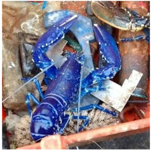 انگلینڈ میں کوسٹ آف ڈینوو کے قریب کریس پکی نامی ایک مچھیرے نے اپنے جال میں ایک نایاب نیلا لوبسٹر پکڑا۔