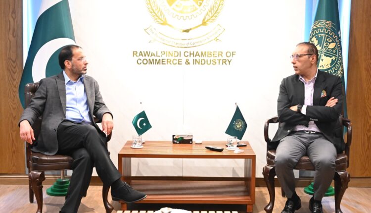 راولپنڈی:معروف پاکستانی بزنس مین نوید انور چوہدری نے گزشتہ روز راولپنڈی چیمبر آف کامرس اینڈ انڈسٹری میں صدر چیمبر عثمان شوکت سمیت دیگر عہدیدران سے ملاقات کی،شکاگو میں کاروباری کانفرنس کے انعقاد پر تبادلہ خیال،