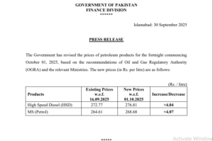 اسلام آباد: وفاقی حکومت نے پیٹرولیم مصنوعات کی قیمتوں میں اضافہ کردیا ہے۔