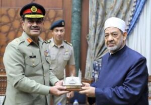 آرمی چیف نے مشائخط الازہر الشریف میں الازہر کے مرکزی امام شیخ احمد الطیب سے بھی ملاقات کی۔ عظیم الشان امام نے امت مسلمہ کو درپیش چیلنجز پر اپنے خیالات کا اظہار کیا۔آرمی چیف سید عاصم منیر نے انتہا پسندانہ نظریات اور اسلام کی متضاد تشریحات کو ختم کرنے کی ضرورت کو اجاگر کیا۔