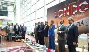 پی ائی اے کی پہلی پرواز پی کے 785 ، 325 مسافروں کو لے کر اسلام آباد سے لندن کے لیے روانہ ہوئی، افتتاحی پرواز کی روانگی کے لیے ائیرپورٹ پر تقریب کا اہتمام،