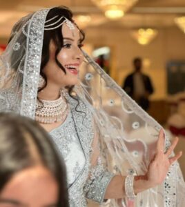 ٹوئٹر پر پوسٹ کی گئی تصاویر میں رابی پیرزادہ سلور رنگ کے خوبصورت عروسی لباس میں ملبوس ہیں جس کے ساتھ ا±نہوں نے دلکش زیور بھی پہنا ہوا ہے۔