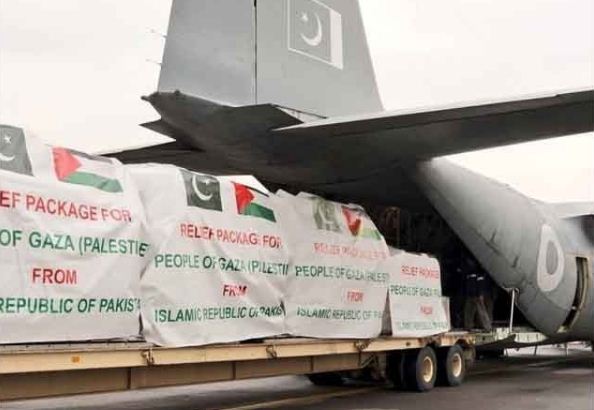 فلسطینیوں کی مدد کے لیے ضروری سامان پر مشتمل کھیپ خصوصی پرواز کے ذریعے نورخان ائربیس سے روانہ کی گئی، جس میں غزہ کی زمینی ضروریات کے مطابق موسم سرما کے لیے گرم خیمے، ترپال اور کمبل شامل ہیں۔