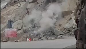 تنگش پر 106 میٹر سے بھی بڑے پتھر گرنے کے باعث سڑک بری طرح بند ہوگئی اور بڑی تعداد میں مسافر گاڑیوں میں پھنس گئے،