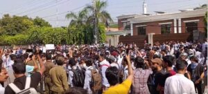 سٹوڈنٹس نے احتجاج کرتے ہوئے نہ صرف کلاسوں کا بائیکاٹ کیا بلکہ کالج کی املاک کو بھی شدید نقصان سے دوچار کر کیا ، مشتعل سٹوڈنٹس نے کالج میں گھس کر توڑ پھوڑ کی اور سامان باہر نکال کر اسے آگ لگا دی ،